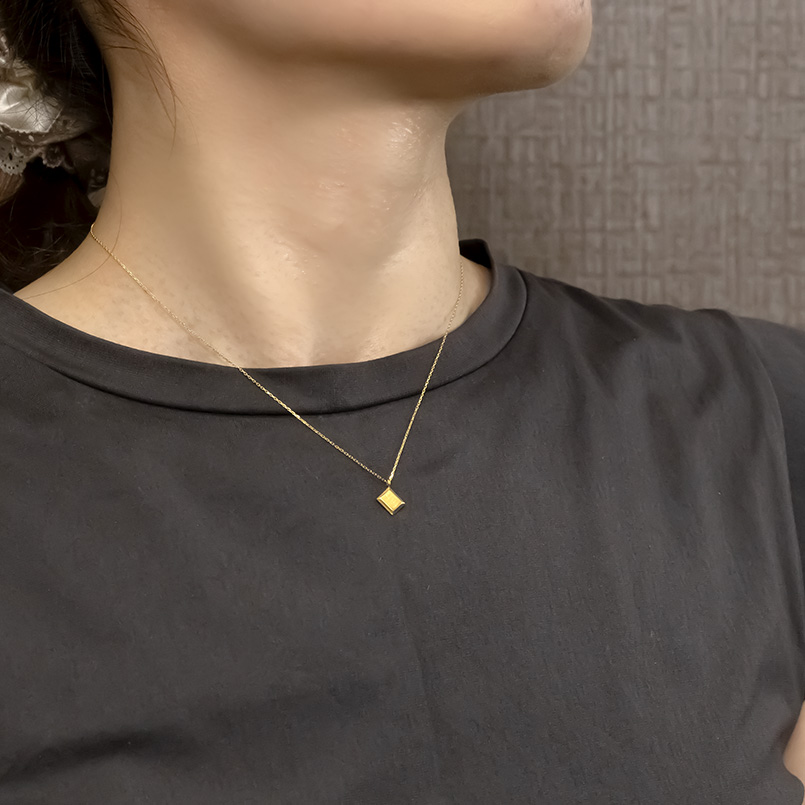小ぶりながら本物の輝きと重みが胸元に特別感をプラス