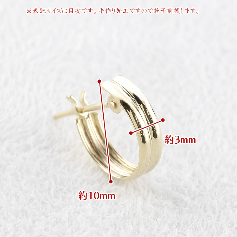18金 フープピアス 小さい 18k レディース 片耳 ピアス 甲丸 2連 ゴールド 小さめ 小ぶり 普段使い イエローゴールドk18 シンプル あすつく 送料無料 セール