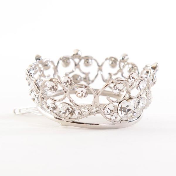 まさに小さな王冠のようなミニクラウンティアラ。大粒のスワロフスキーを多用しているのでまぶしいぐらいに輝きます。さりげなくセンターに大粒ハート型のスワロフスキーが使われています。