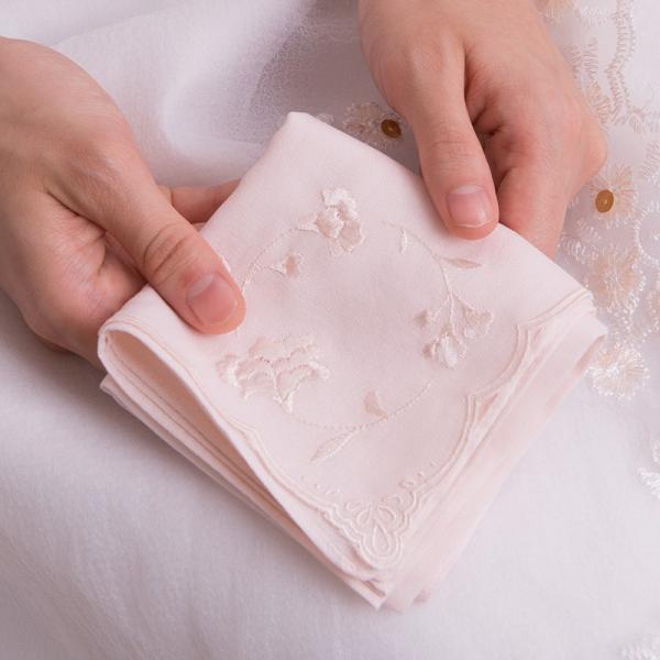 フォーマルハンカチ コーナー刺繍カーネーション 花嫁 結婚式 ウェディングドレス 婦人用 冠婚葬祭
