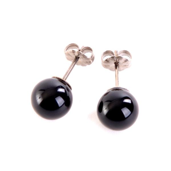 日本製ブラックオニキスピアス 8mm丸珠 チタンポスト 天然石 冠婚葬祭 ブラックフォーマル 葬儀 通夜 告別式 法要