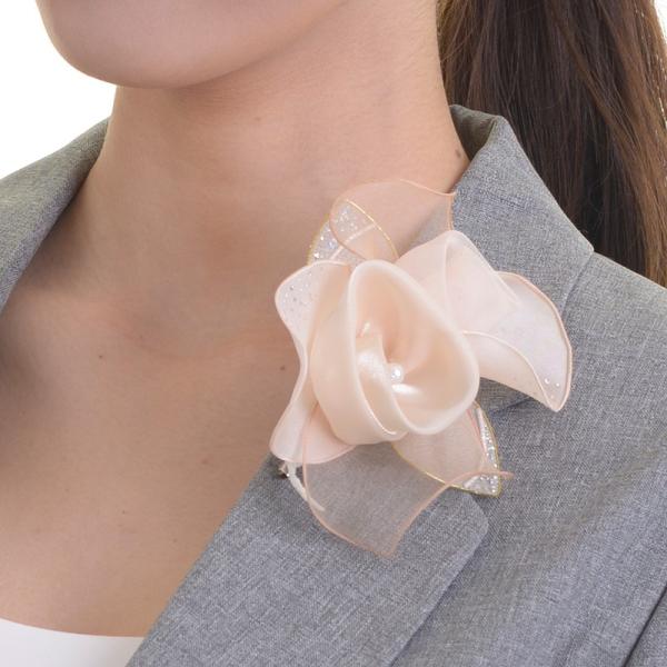 巻きシフォンコサージュ 日本製 2輪 オーガンジー パール ラメ 入学式 入園式 卒業式 卒園式 おしゃれ