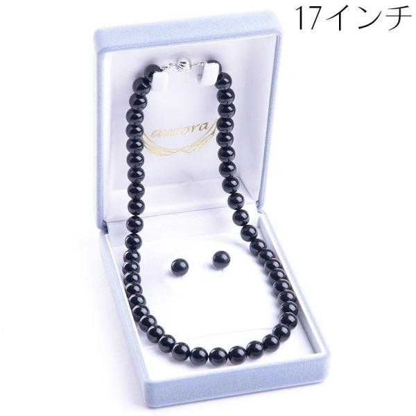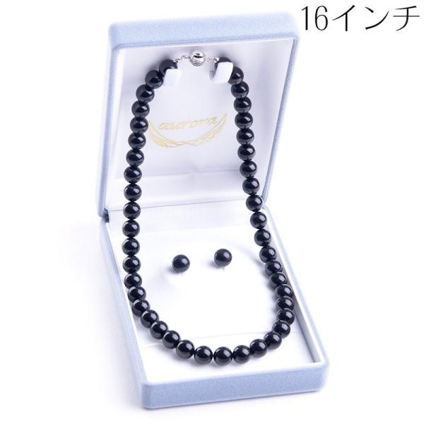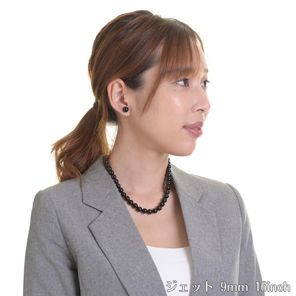 9mmジェットネックレス ピアス イヤリングセット 化粧箱付 黒琥珀 16インチ 17インチ 18インチ 42cm 45cm 47cm チョーカー プリンセス