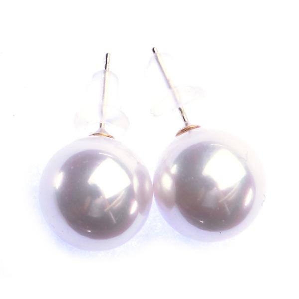 本貝パールピアス 日本製K18 18金 ポスト 10mm パーティー 結婚式 フォーマル