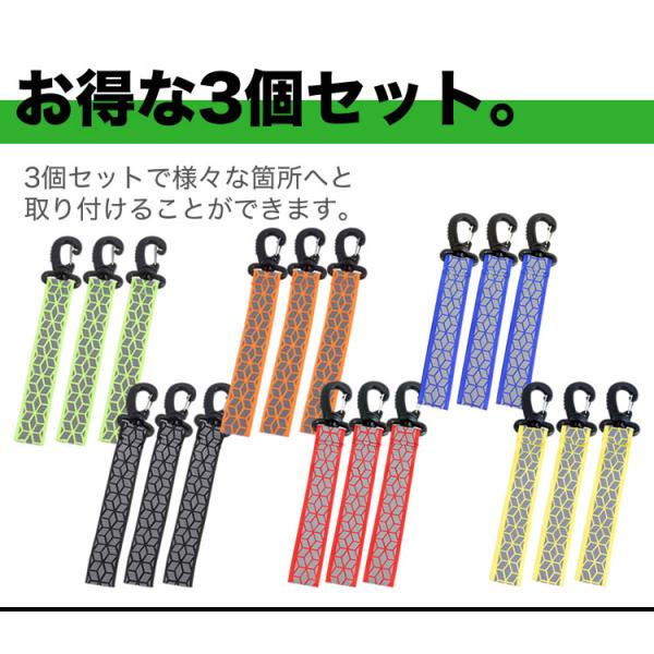 カラビナ 反射 ストラップ 3個セット リフレクター キーホルダー 交通安全 夜間反射 反射ストラップ バッグチャーム アクセサリー 通勤 通学 通園 ランニング