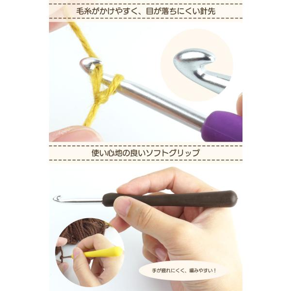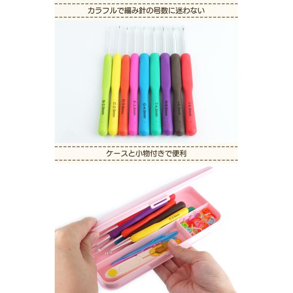 セット内容:かぎ針×9、段数マーカー×10、とじ針×6