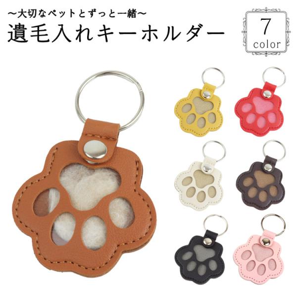 ペット メモリアル キーホルダー 遺毛グッズ 遺毛ケース レザーキーホルダー 犬 猫 かわいい 携帯用 キーケース キーリング コンパクト 肉球モチーフ 5色