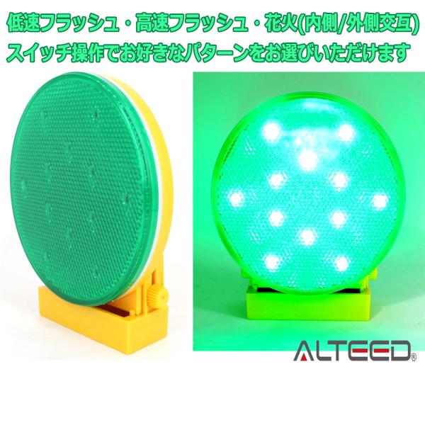 ALTEED/アルティード 電池式LEDワーニングライト 緑色発光 50時間超長寿命 非常信号灯ランプ 点灯パターンチェンジ