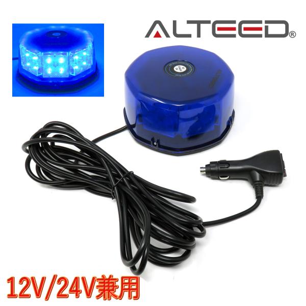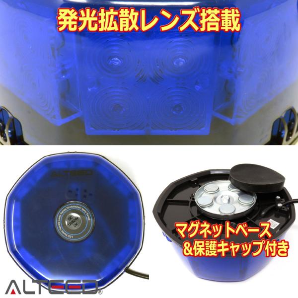 ALTEED/アルティード 自動車用LED回転灯 青色発光有色カバー 八角型32LED パトランプライト 12V24V兼用