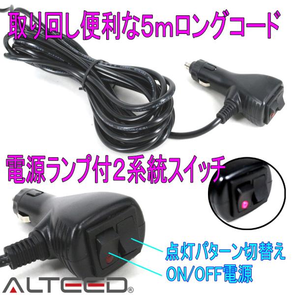 ALTEED/アルティード シガープラグソケット5m延長ケーブル 電源コード 14AWG 2.08mm2(2sq) SPT-2 15A高許容電流仕様 12V/24V