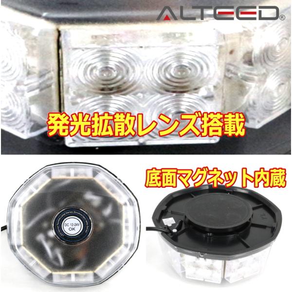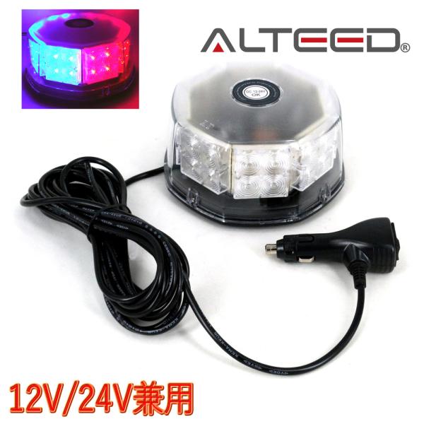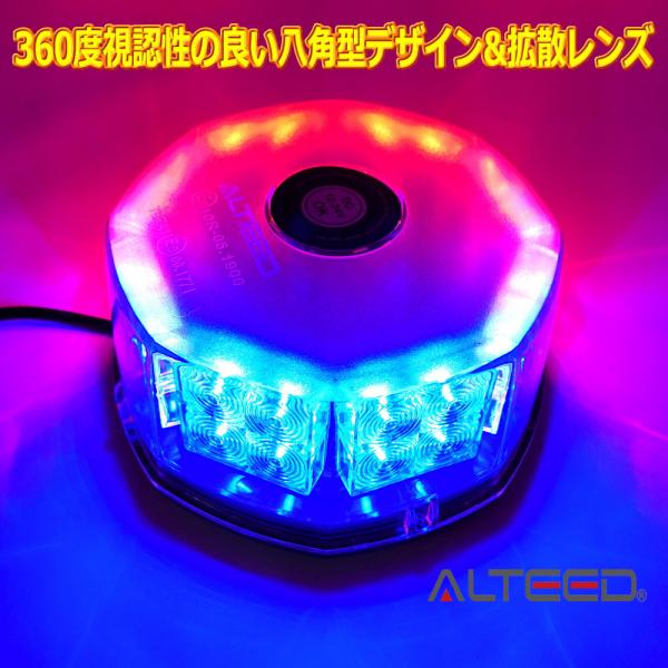 ALTEED/アルティード 自動車用LED回転灯 赤色青色発光 八角型32LED パトランプライト 12V24V兼用