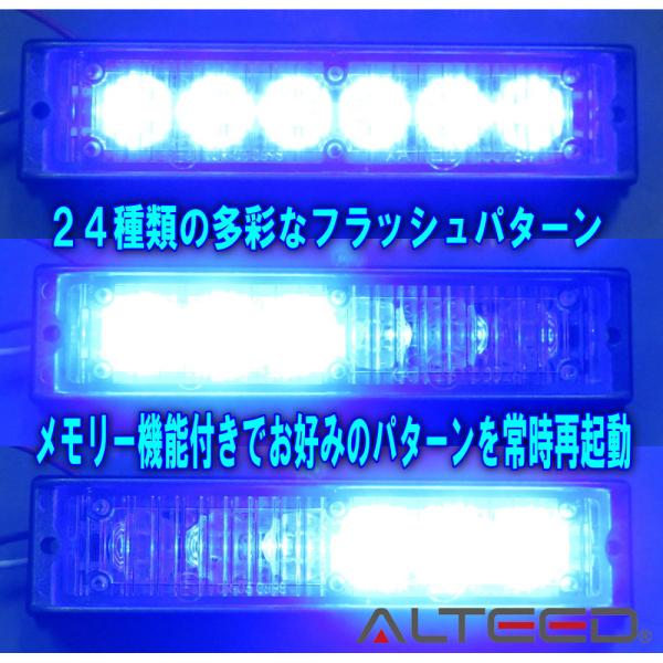 ALTEED/アルティード 自動車用LEDフラッシュライトバー 青色発光24パターン 小型薄型アルミダイカスト 同期連動機能有り 12V-24V兼用