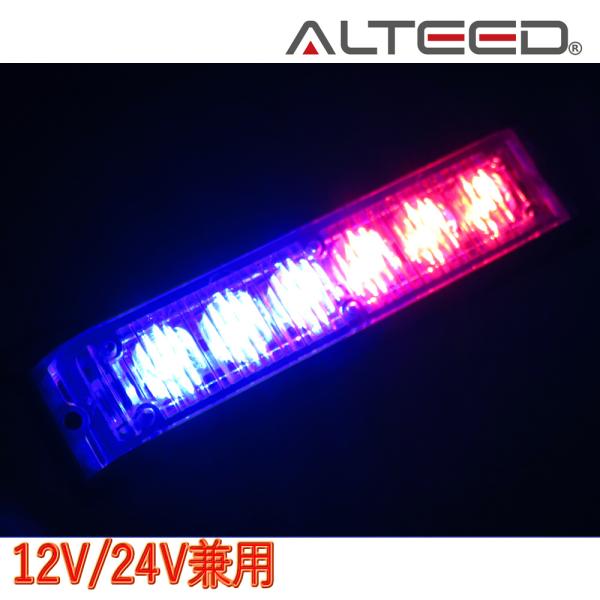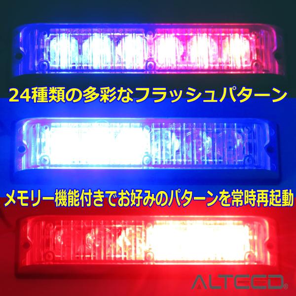 ALTEED/アルティード 自動車用LEDフラッシュライトバー 赤色青色発光24パターン 小型薄型アルミダイカスト 同期連動機能有り 12V-24V兼用
