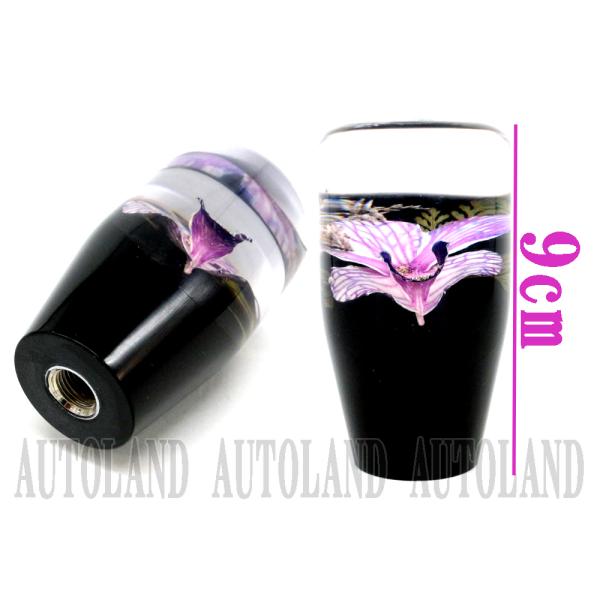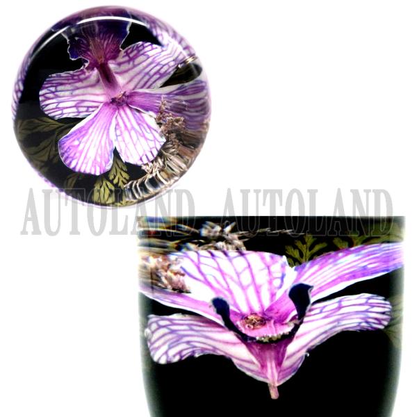 水中花シフトノブ 紫色 本物蘭生花使用 90mm 9cmサイズ