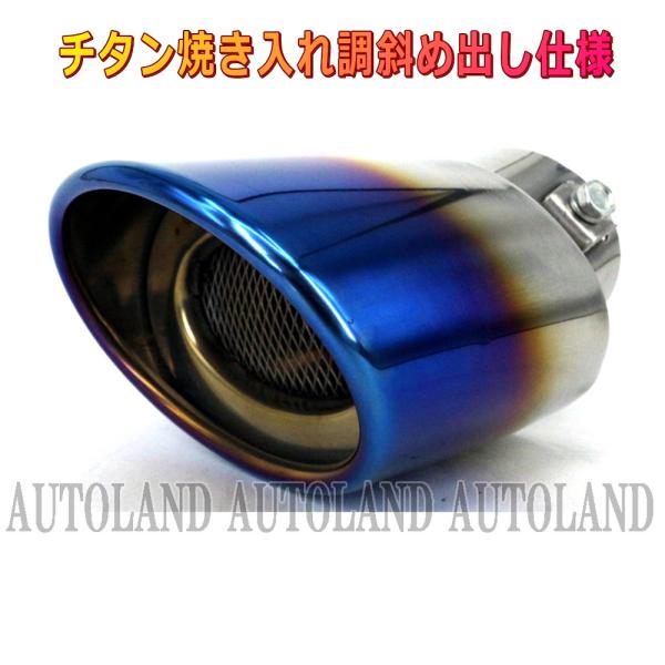 マフラーカッター チタン焼入れデザイン オーバル跳ね上げ斜め出し シングル出しマフラーパイプ