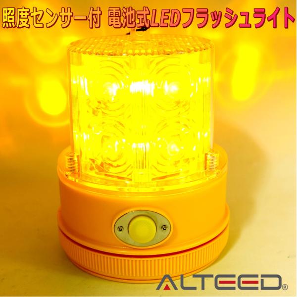 ALTEED/アルティード 電池式LEDフラッシュ警告表示灯 黄色発光 高耐荷重ボディ長時間発光 点灯点滅 緊急時信号灯ランプ