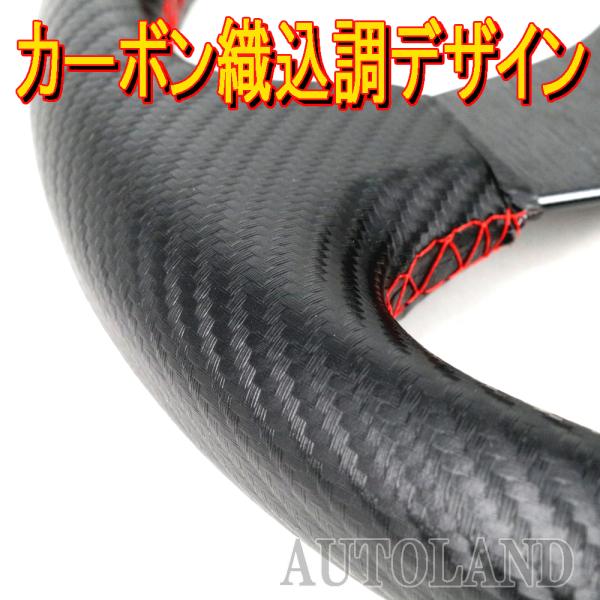 スポーツステアリング 320φ カーボン調デザイン レッドステッチ加工 円形ハンドル