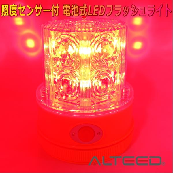 ALTEED/アルティード 電池式LEDフラッシュライト 赤色発光 250時間超長寿命 照度センサー付パトランプ