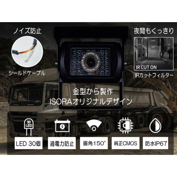 バックカメラ (CMOS-B) トラック用 赤外線暗視機能 夜間対応 広角 視野角150° 防水IP67 CMOSセンサー 延長20mケーブル付属 後付け 車載 12V 24V ISORA製