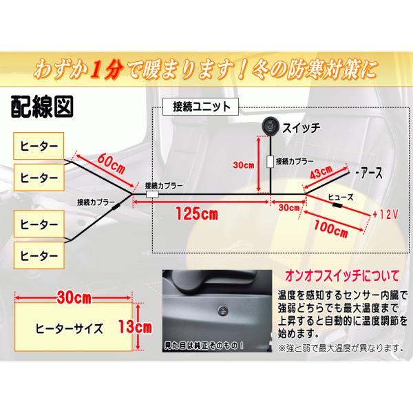 シートヒーター 4枚セット 1席分 後付け汎用 1シートカバー専用 温度段階調節可能 オンオフスイッチ付き 取り付け 車載 車用 社外 切り替え 切替