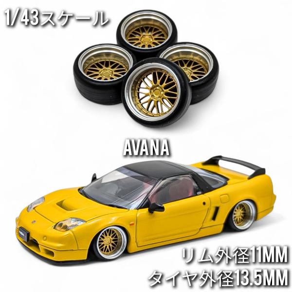 1/43 ホイール ミニカー 交換用 ゴールド タイヤ外径13.5mm リム外径11mm (r11)
