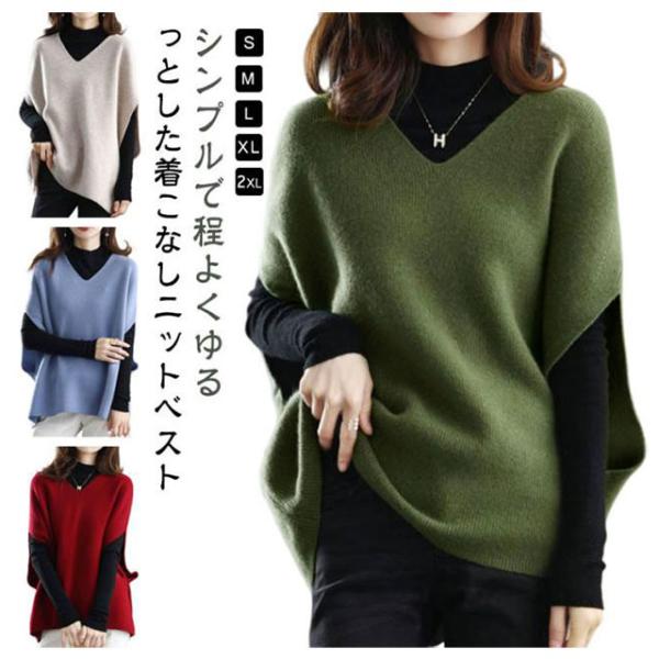 レイヤード ニットトップス ニットベスト ドロップショルダー トップス ヒップ丈 レディース Vネック 秋冬 Vネックベスト きれいめ ゆったり 30