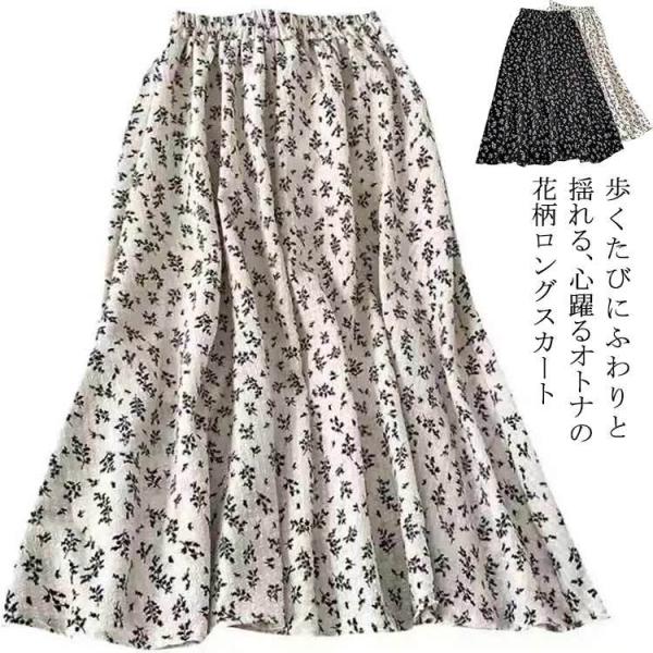 ロングスカート 小花柄スカート 花柄 レディース ボトムス ロング マキシ丈 膝下 ひざ下 Aライン スカート フレアスカート ウエストゴム フラワー