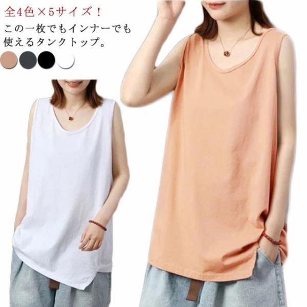 タンクトップ レディース ノースリーブ カットソー トップス Uネック tシャツ 無地tシャツ インナー レイヤード 重ね着 体型カバー ゆったり カ