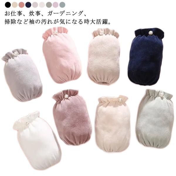 アームカバー レディース 家事 袖カバー 腕カバー 腕抜き 袖汚れ防止 袖口カバー パール付き 取り外し可能 かわいい 腕ぬき 事務所 仕事 園芸 農