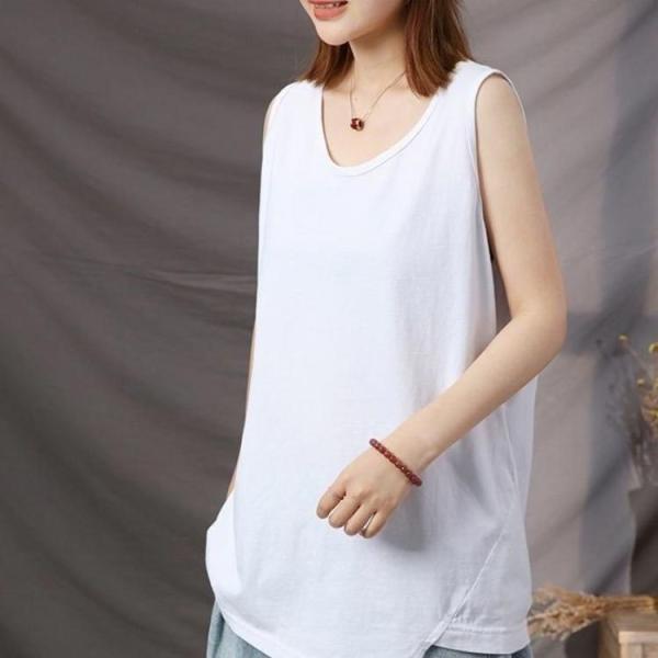 タンクトップ レディース ノースリーブ カットソー トップス Uネック tシャツ 無地tシャツ インナー レイヤード 重ね着 体型カバー ゆったり カ