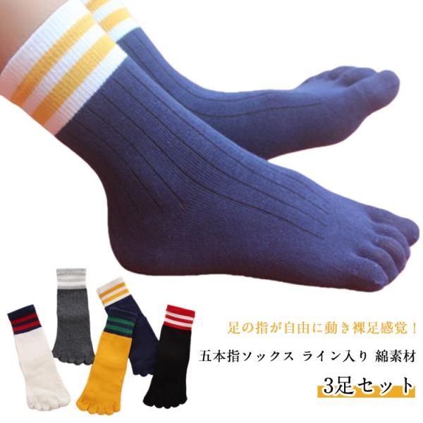 キッズ ジュニア 子供 クルーソックス 靴下 5本指 くつ下 ライン入り 【3足組】五本指ソックス 【3足組】五本指ソックス 男の子 女の子 スポーツ