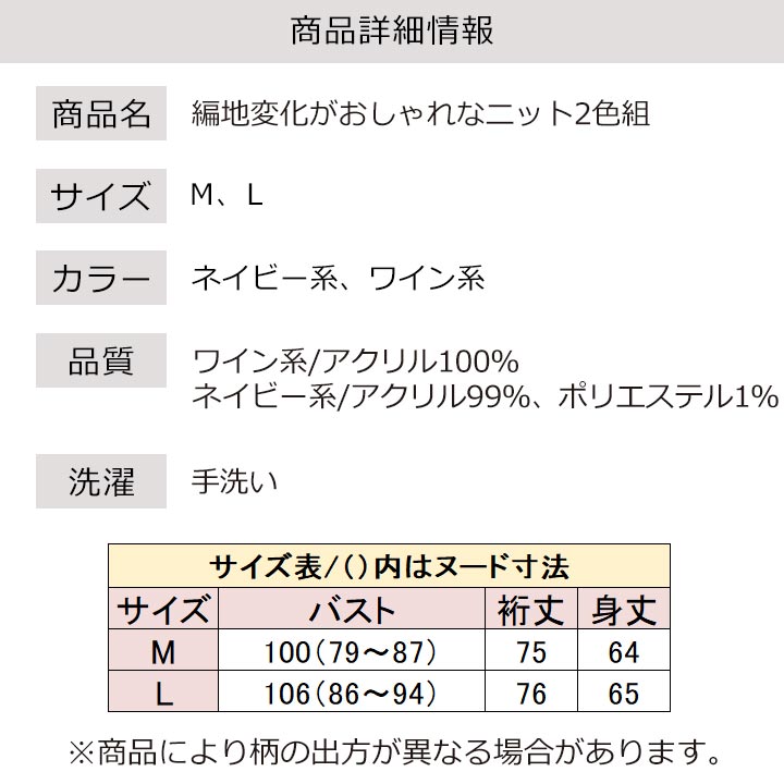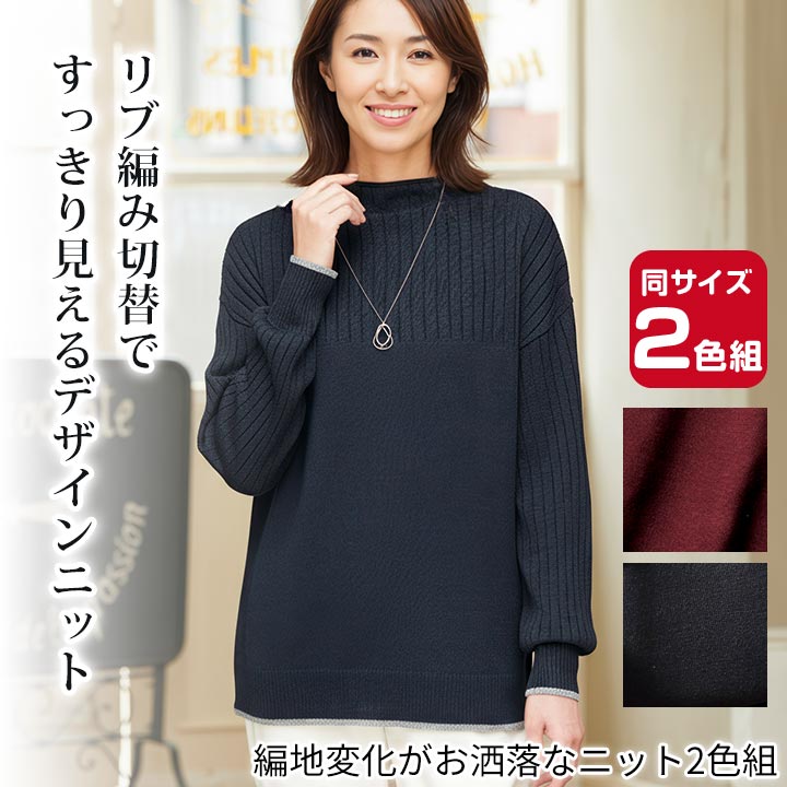 即納★ 在庫限り 編地 変化 お洒落 ニット 2色組 [961315-70347] ニット セーター レディース ファッション カジュアル きれいめ オフィス