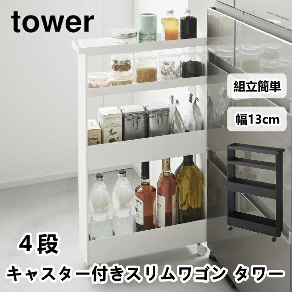 キャスター付きスリムワゴン タワー 4段 山崎実業 1806 1807 おしゃれ キッチン収納 隙間収納 収納 インテリア 収納ラック すきま スリム