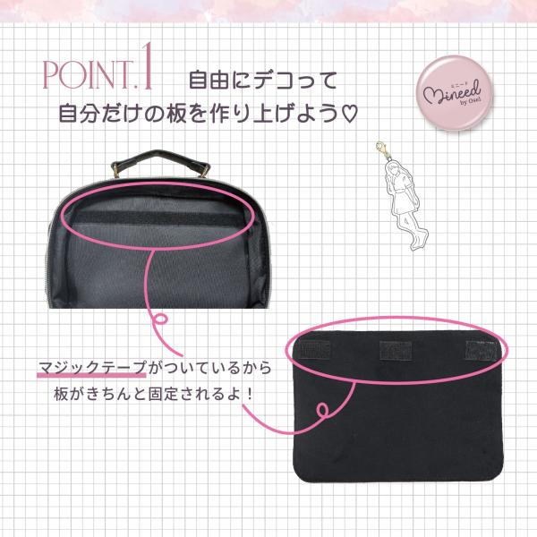 缶バッジやキーホルダーを付けられる取り外し可能な板付き!
