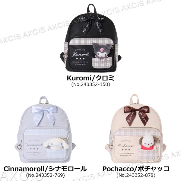 サンリオキャラクターズ ミニデイパック クロミ シナモロール ポチャッコ ぬい付き チェック 合皮 バッグ バック 鞄 かばん 肩かけ ぬいぐるみ