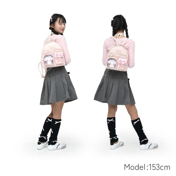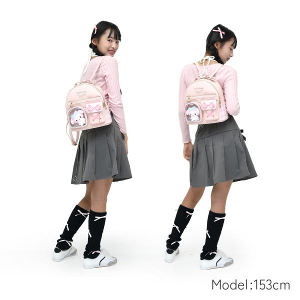 サンリオキャラクターズ ミニデイパック リュック クロミ シナモンロール マイメロディ ポチャッコ 合皮 チェック ぬい 2ポケット クリア 通販