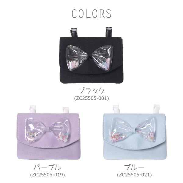 キッズ 小学生 幼稚園 園児 女の子 ジュニア 抗菌 防臭 加工 衛生対策 コボカ プラス 清潔 クロ ブラック 黒 紫 ゴールド パール リボン バレエコア シンプル マルチ 移動ポケット ポーチ ポシェット ショルダー クリップ 簡単 かんたん かわいい ばんそうこう 救急セット ハンカチ ティッシュ