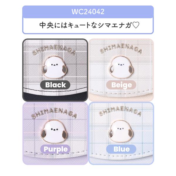 シマエナガ ミニ財布 三つ折り財布 チェック柄 プレート付き 合皮 コンパクト ティーン 女の子 小銭入れ プレゼント