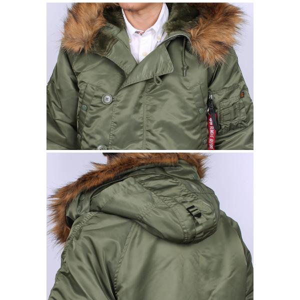 寒冷地仕様の『N-3B』ワイドシルエット!極寒地の地上勤務用として使用されており、卓越した保温性や機能性を誇るナイロンヘビーツイルを使用。 フロントはジッパーの上をボタンで留める仕様で、大きめなロゴ入りジッパーは高い位置まで上がり、内側がボアになったフェイクファー付の大きめフード、ジップの上からボタンで留めるフロント、袖口内側のニットカフが暖かさをキープ。 また、内側にはドローコードを完備し、ファーは取り外し可能です。 左袖には、本物の証であるALPHAタブとエマージェンシーキット(シガレットポケット)を収納するポケットが装備。