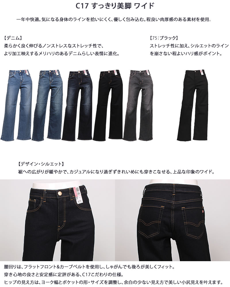 C-17 ワイド すっきり美脚 C17 シーセブンティーン CB345 レディース ジーンズ デニム ストレッチ