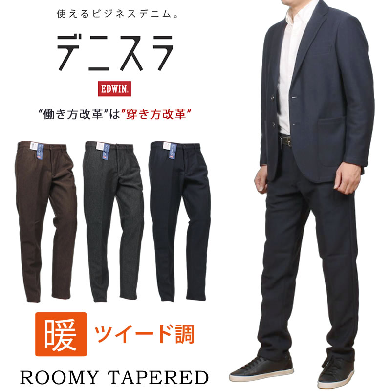 SALE EDWIN エドウイン デニスラ 暖 ルーミーテーパード ツイード調 エドウィン 冬 EDB107 368 376 304