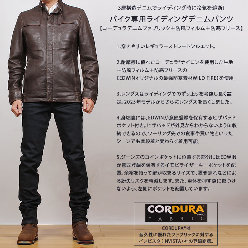 EDWIN エドウイン WILD FIRE 暖 バイク専用ライダージーンズ CORDURA レギュラーストレート 三層構造 エドウィン ジーンズKBW003