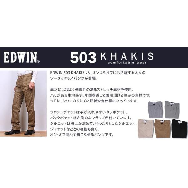 SALE EDWIN エドウィン チノパンツ メンズ ツータックトラウザー シワになりにくい形状安定 エドウイン スラックス KT0503