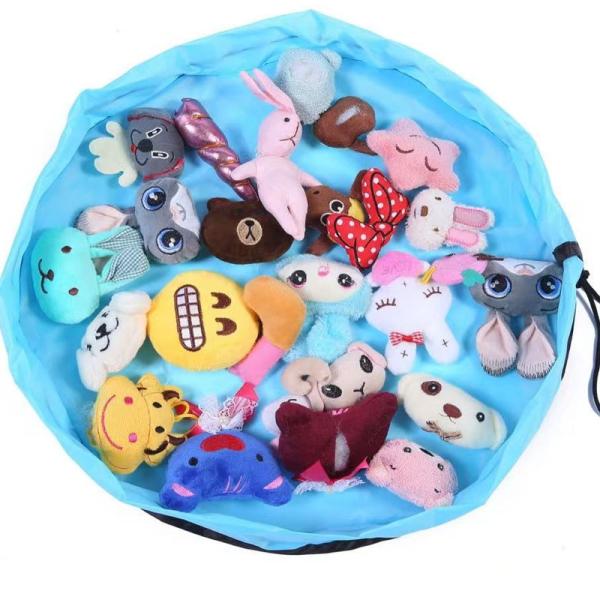 ▼紐を引っ張ってシートをキュッと絞めて、おもちゃを簡単にまとめることができます。