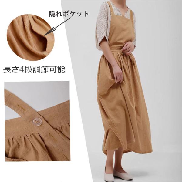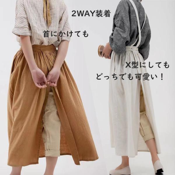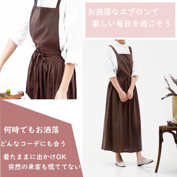 エプロン レディース ロングエプロン 母の日 プレゼント 北欧 おしゃれ エプロンドレス コットン 綿 麻 リネンエプロン カフェ ガーデニング ベージュ 爆買