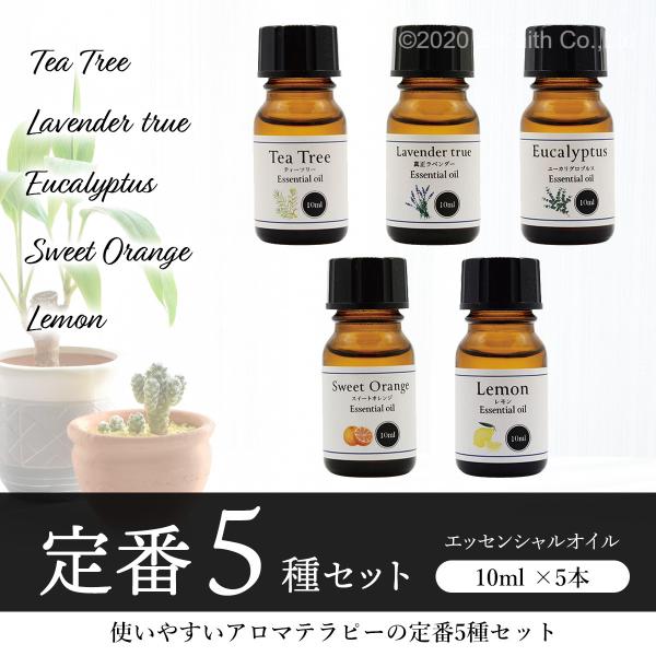 エッセンシャルオイル 人気5種セット 各10ml 精油 アロマ 天然100% ティーツリー ラベンダー ユーカリ オレンジ レモン