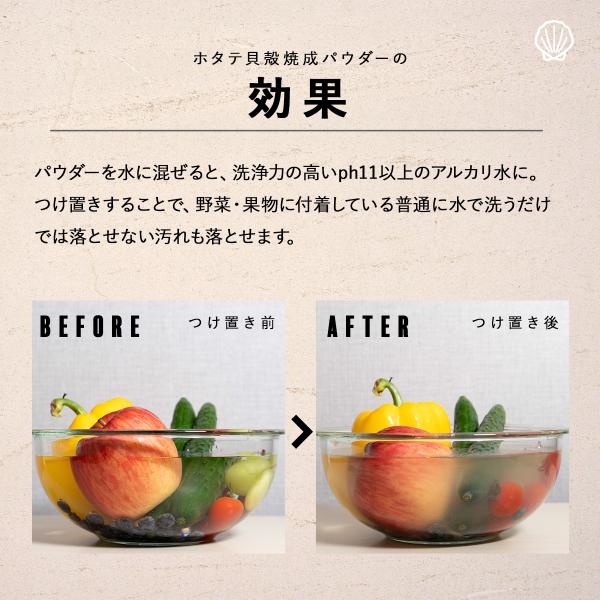 青森産 ホタテ貝殻焼成パウダー 100g ホタテ ほたて 貝殻 帆立 強アルカリ水 野菜 果物 洗い 粉 洗濯 洗剤 洗浄
