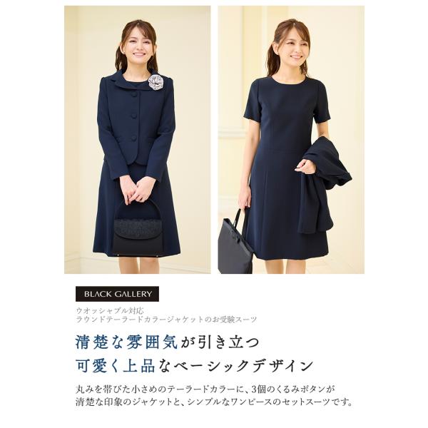 お受験スーツ レディース 大きいサイズ 面接 紺スーツ ラウンドテーラードカラージャケットのお受験ママアンサンブルスーツ(160511377)