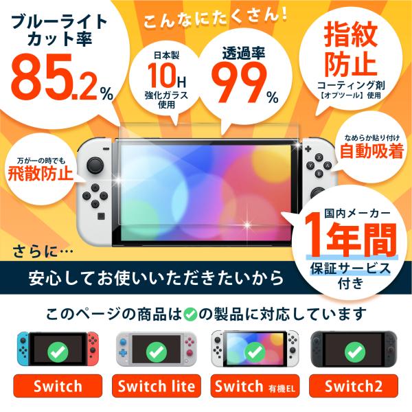 任天堂スイッチ switch2 画面 保護 フィルム 目に優しい ブルーライトカット 極上 ガラスフィルム Switch 有機EL Switch Lite Nintendo スイッチ2