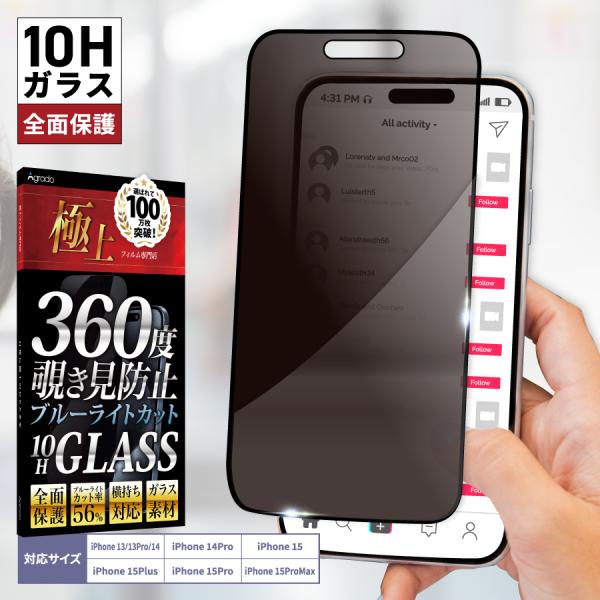 Agrado iPhone ガラスフィルム 360度 覗き見防止 全面保護 13 14 15 17 17Air 17Pro 17ProMax Plus 強化 極上 ブルーライト 除き見防止 爆買